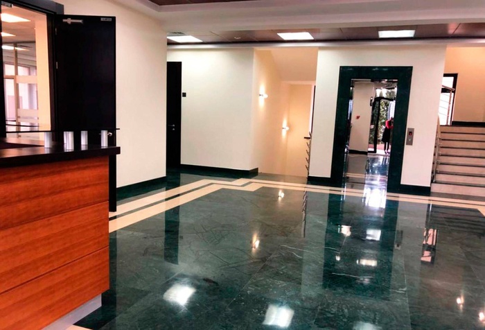 Здание имеет 5 этажей, общая площадь – 2 000 кв. м. Такой масштаб позволяет размещать средние и малые офисные команды. - Высота потолков и планировка